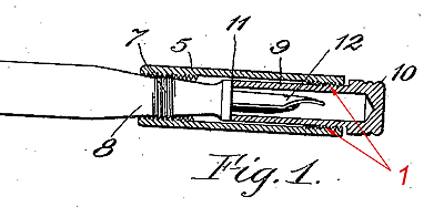 Если кто не в курсе, вкратце поясню смысл изобретения. Самая неприятная проблема ручки, это протечка чернил в карман, сейчас это уже актуально в меньшей степени, а на рубеже 19-20 веков это был прямо-таки бич производителей и пользователей. Придумать надежную систему запирания чернил в системе еще не могли, поэтому пытались придумать хотя бы способ надежной герметизации полости колпачка.