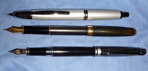 Хотелось бы узнать о фирме Sz.leqi и о ручках, которые она выпускает. На день рождения получил от коллег презент - набор из перьевой и шариковой ручек Sz.leqi 400. По внешнему виду - типичная китайско-тайваньская поделка в стиле "a la приличная ручка". Сделана довольно топорно, на перьевой нет даже обозначения ширины письма. На пере гордая надпись Iridium point Paris, но шарик, похоже, имеет к иридию такое же отношение, как само перо к Парижу. Перо неважное, царапает, есть пропуски линии. Колпачок защелкивается очень туго, оставляя царапины на кольце. В общем, явно не шедевр. Однако, сегодня, зайдя в магазин, обнаружил, что это псевдофранцузское чудо стоит столько же, сколько Waterman Apostrophe. Понимаю, что в наших магазинах возможно всё: сам купил Pilot Capless за 650 гривен (около $80), а рядом на витрине лежал Parker 45 за 675 гривен, и продавец настойчиво уговаривал меня купить 45-й: это же Паркер!