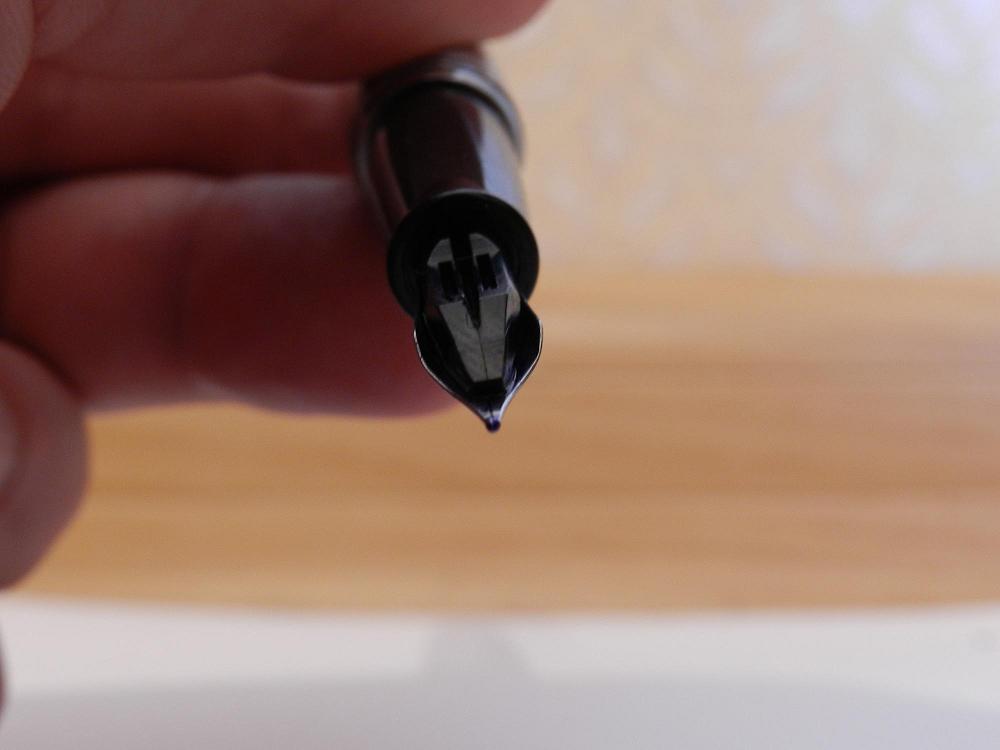 Добрый день! В подарок привезли ручку перьевую Inoxcrom. Вставил картридж, пописАл и убрал в карман. На следующий день обнаружил, что все чернила в колпачке При письме обнаружил, что чернила копятся между пером и черной штукой, которая под пером (извините, не знаю как называется) и даже при достаточно легком встряхивании летят кляксы, а при самом письме уж больно обильно подаются на бумагу. Подскажите, это лечится?