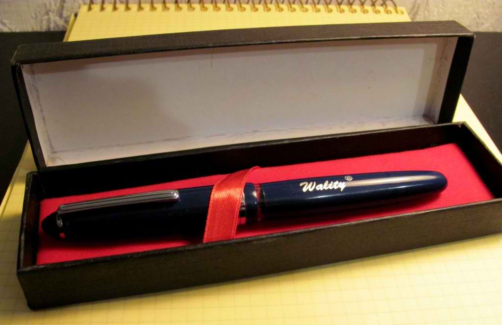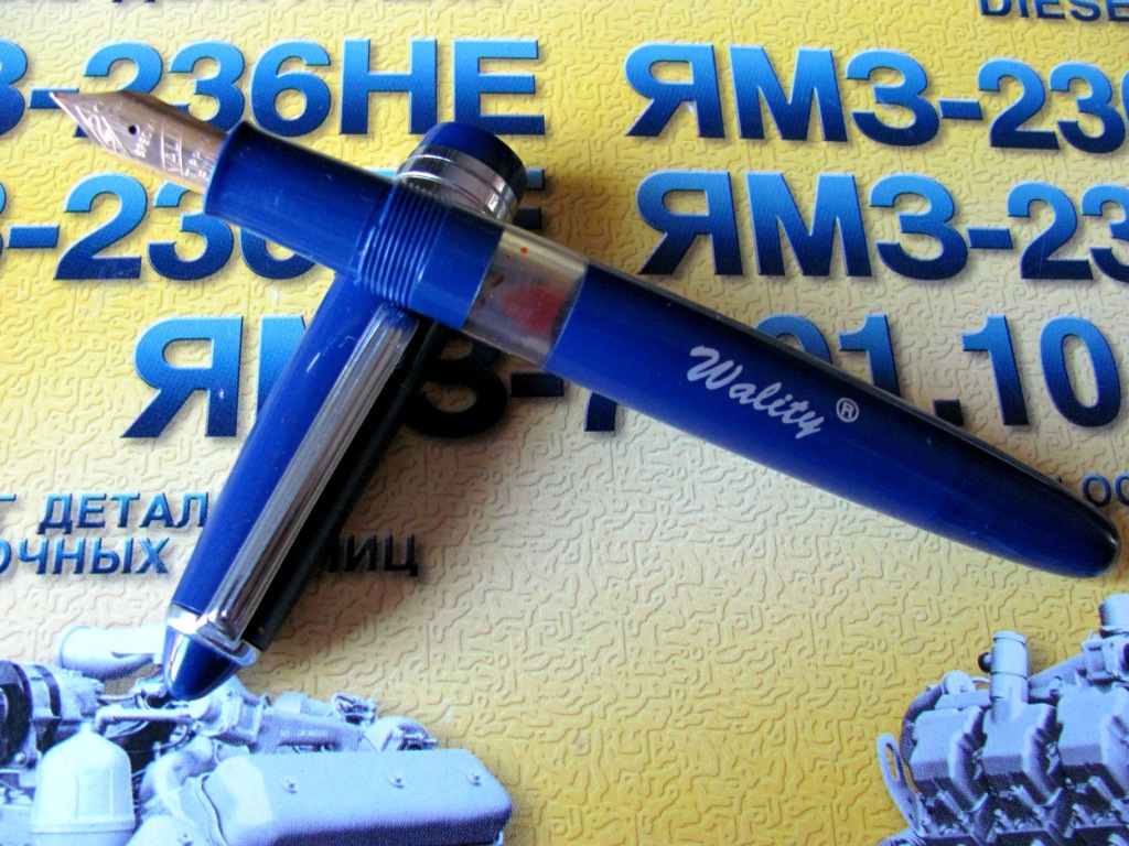 Возникло желание приобрести для работы очередную простенькую перьевую ручку.Выбор пал на Wality,вроде простая,дешёвая,не жалко эксплуатировать ежедневно в "экстримальных" условиях.Заказ был сделан Энди, неделю подождал доставку.Скажу сразу - ручкой остался доволен,хотя на заграничных сайтах отзывы не очень благосклонны.Поршневая система заправки с окошком проверки уровня чернил (даже с надетым на резьбе колпачком виден остаток чернил) - это,конечно,плюс,ибо при манипуляциях со шприцом и картриджами не раз ловил на себе удивлённые взгляды клиентов (приходилось объяснять что и как...).Широкая в диаметре,общий вес 22 грамма,без колпачка - 13 грамм.Длина ручки без колпачка 130 мм,с надетым на баррел - 168 мм(это явно много,пишу не надевая колпачок).Перо стальное,довольно жёсткое,но пишет на удивление тонко и гладко,подача чернил умеренная - это как раз то,что мне нравится.Могу рекомендовать эту ручку тем,у кого широкая кисть руки для повседневного письма.