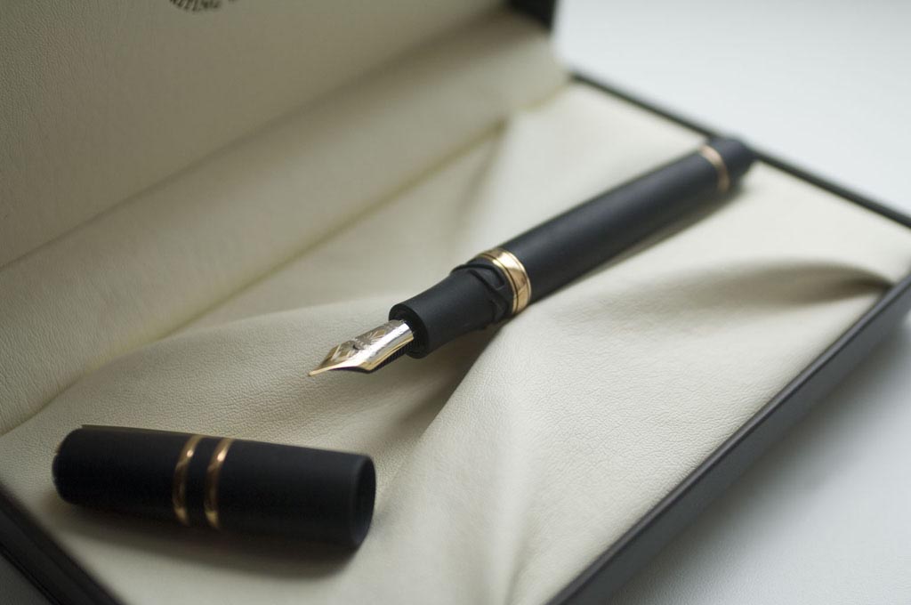 Корпус из лавы, перо из палладуима и поршневая система заправки. Подробнее здесь.