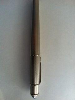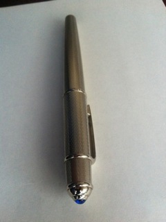 Описание, узор в виде шевронов, паладиевая отделка, кабошон из синего каучука, часть корпуса из композитного материала, перо из золота 18 карат с родиевым покрытием.