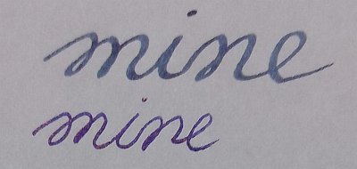 Перо я выпрямил чуть получше, но оно как-то странно встает назад. И видимо перекос был из-за этого. Я вставляю перо с фидером в секцию довольно туго, но чувствуются какие-то "неправильные" внутренние напряжения, из-за чего при письме перо немного поскрипывает и положение пера чуть-чуть "гуляет". На третий раз мне удалось поставить перо так, что оно перестало наклоняться вбок, но тем не менее оно по-прежнему слегка отходит от фидера (будучи вставленным в нормальном положении). Честное слово на перо при письме я не давлю. Я так расстроился, что исписав страницу ручку забросил. Она сейчас пишет, но подача чернил неравномерная и после нескольких секунд простоя становится сухой. Тем не менее относительно широкое перо просто шикарно пишет! Я не стараюсь, но буквы сами по себе выводятся красивыми. (ниже картинка с образцом CS и Sailor с пером F). Вроде бы длинный фидер совершенно прямой, не пойму в чем дело, почему перо не хочет к нему плотно прижиматься.