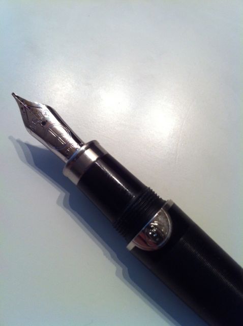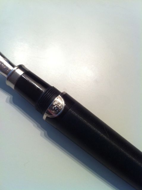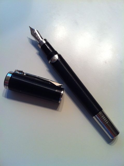Перо F, поршневая заправка, очень приятный корпус- фактура виниловой пластинки.