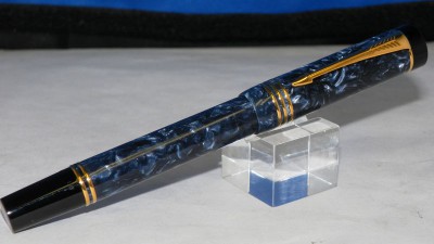 Это роллер Паркер Дуофолд blue marble. Выпускался в начале 90х годов. Если ручка в хорошем состоянии, а имеено новая, с коробкой и документами, то потянет и на 8 т.р. Если без коробки, документов, со следами использования - не выше 5 т.р. в зависимости от состояния.