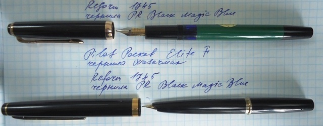 1. Pilot pocket elite F. Перо стальное. Достаточно жесткое. Подача чернил хорошая. Пишет хорошо.