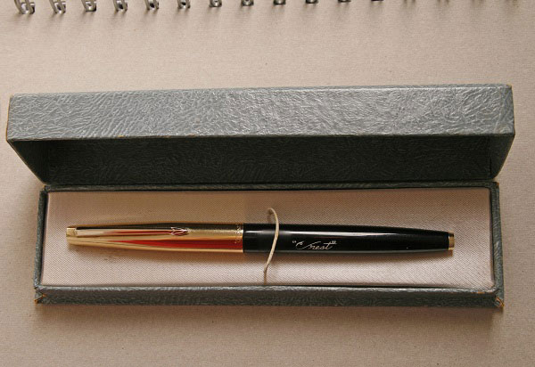 | Julia11 писал(а): | Слуайно попал в руки вот такой экземпляр предположительно из 70х годов. А может, и 61 Если кто опознает эту модель, буду рада любой информации. Лежит в коробке. Перо открытое, напоминающее... сами видите, что. На пере надпись "Crest" и символ из волнистой линии в круге. На корпусе тоже надпись "Сrest". На коробке - символ горы, прищепка на колпачке похожа на Паркер. Короче, собрано все лучшее со всего мира ) Думаю, старался кто-то из Азии, но для китайцев инструмент сделан чересчур добротно. Заправка - пипетка с инструкцией по-английски, как ею правильно пользоваться "нажмите 5 раз и т.д." Длина 12,3см , толщина 1 см, вес 11гр. Корпус - пластик, колпачек позолоченный. Ваше мнение? |