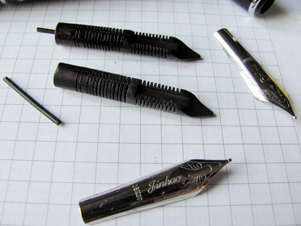 Подозреваю,что дело в негерметичности системы подачи,но перо было "сырым",и я его правил и полировал. Окунал,пробовал, потом снимал фидер с пером для промывкии, потом снова пробовал и полировал. Когда стало нравиться письмо,собрал и заправил. А она не держит...