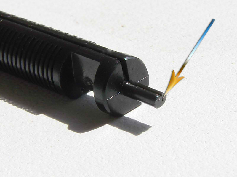 В глубине грипа со стороны вставления картриджа-конвертера видна выступающая трубочка,которая,собственно,и выдавливает шарик картриджа.В неё со стороны перьевой части грипа входит стержнеобразный выступ фидера(когда фидер вставлен в грип),имеющий канавообразный паз с углублениями вдоль стен(больше всего напоминает грамотно выкопанный ростовой окоп. Ну,знаешь,чтобы лужи не скапливались посередине,вдоль обоих стенок окопа прокапывают канавки,которые глубже дна окопа.Вода уходит по ним) Стержнеобразный выступ около 1 мм в диаметре и 4-5 длиной,со скошенным торцом,отлит как единое целое с фидером.
