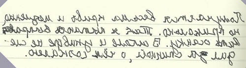 а у Евгения Максовича учится девушка пишущая левой рукой, которая разворачивает бумагу на 180 градусов - и пишет кверх ногами - ей так удобно» (http://ru-calligraphy.livejournal.com/315600.html)