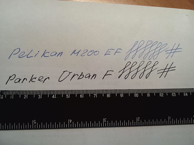 Образец письма Пеликан М200 (EF), чернила Пеликан, для сравнения Паркер Urban (F) чернила Радуга P.S. фото с телефона