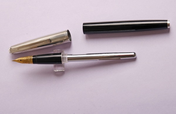 Одна из самых удачных и популярных моделей фирмы. Произведена в 80е годы. В наличии 4 цвета - бежевый, зеленый, бордовый и черный. Открытое перо - сталь с иридиевым наконечником, F. Пишет легко и гладко. Система заправки - пипетка. Длина в колпачке - 14,1см, длина без колпачка - 13,3см, толщина - 1,1см. Вес в колпачке - 19г, вес без колпачка - 12г.