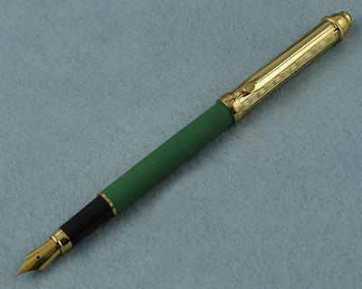 Классическая ручка в пластиковом корпусе со стрелочкой вблизи пера. В наличии три цвета - черный, зелёный, бордовый. Перо закрытое, золотистое, сталь с покрытием. Ручка пользуется спросом благодаря исключительной гладкости письма и оптимальной подаче чернил, достаточно обильной, но не чрезмерной. Длина в колпачке - 14см, длина без колпачка - 12,3см, толщина - 1см. Вес в колпачке - 15 гр, без колпачка- 11 гр.