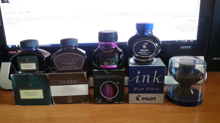 Там же приобрёл 11 пузырёчков разных чернил. Буду теперь потихоньку сравнивать всё