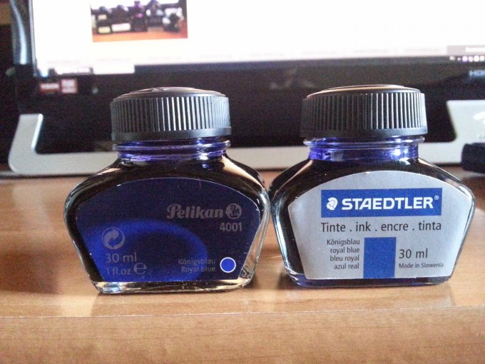 Да, так и есть. Цена чернил отличается в разы, но вот принципиальной разницы между Royal Bleu у Pelikan и Staedtler я как не присматривался увидеть так и не смог.