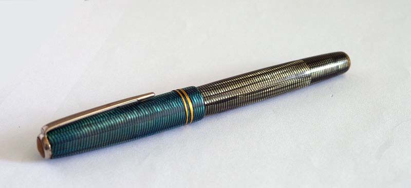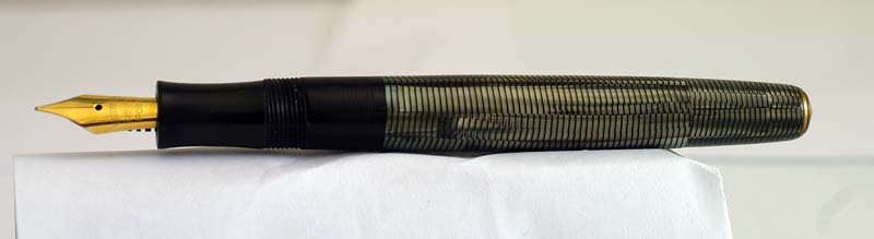 На мой взгляд, за образец дизайна явно использавали Parker Vacumatic, хотя механизм заправки - обычный поршень. На пере стандартная надпись ”Warranted iridium point” а на колпачке выдавлено слово Extra. Что это означает – название фирмы, или модель, непонятно. Показал эту ручку приятелю и он сказал, что лет 35 назад у него тоже было что-то похожее. Может кто-нибудь из участников форума видел подобную ручку и может про неё что-нибудь рассказать.
