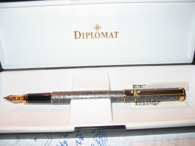 Фото пера попробую сделать - выложу. Собственно, перо такое же за исключением того, что на моем перед "Diplomat" есть надпись 18K - 750. И цена у нее значительно больше. Интересно делает ли Diplonat эти модели с золотыми перьями?