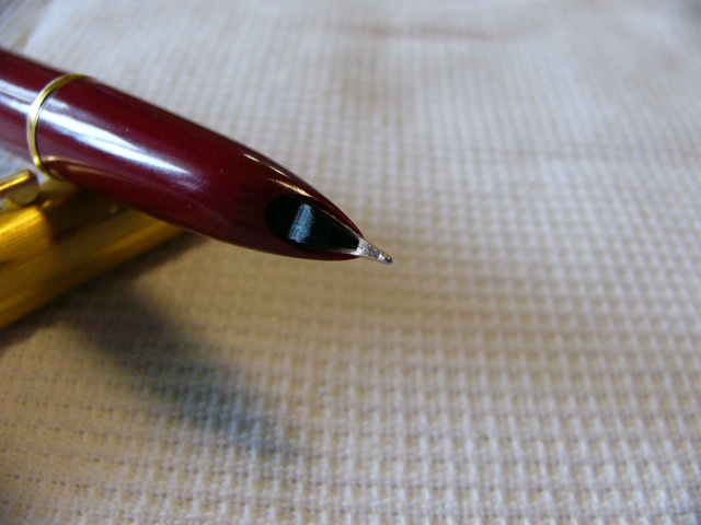 Авторучка мало была в использовании. На пере имеются небольшие вмятинки, не влияющие на качество письма.