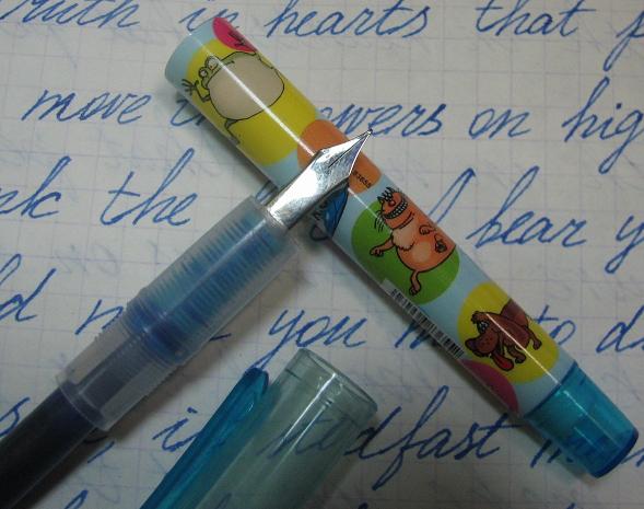 Школьная ручка с веселеньким оформлением, перо - F. Заправка - к/к.