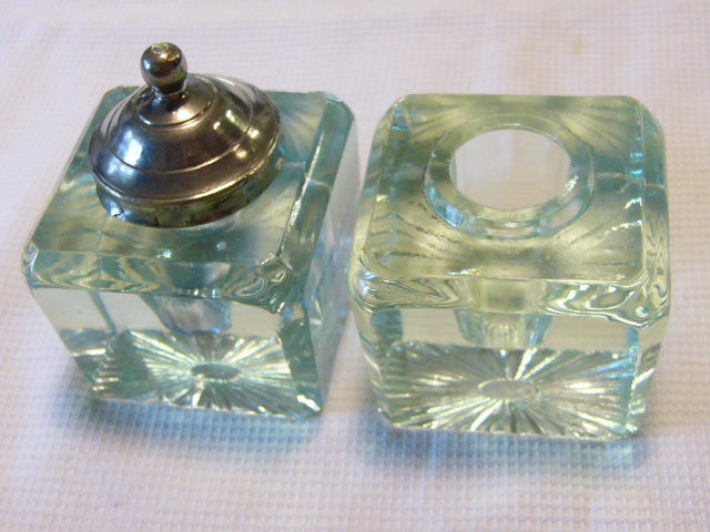 | Одна настольная чернильница из стекла "Кубик" с латунной крышкой ПРОДАНА.