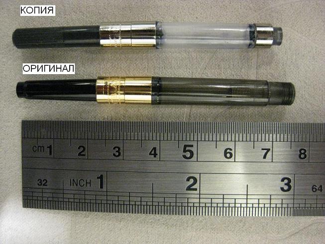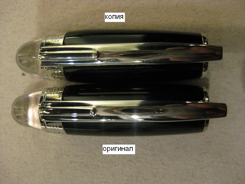 Размеры отличаются в считанных миллиметрах, долях миллиметра. Под клипом (не удалось сфотографировать - требовалось уже разбирать) на подделке стали наносить слово PIX - ранее служило отличительной чертой от подделок (т.е. есть слово PIX под клипом - оригинал, нет слова PIX - подделка)Very Happy Фальшиворучечники научились наносить это слово тоже Very Happy Хотя сам МВ стал ставить слово PIX под клипом ручки начиная где-то с начала девяностых годов. Смотрите внимательно на детали и заметите разницу. Как в игре - найди десять отличий Very Happy Каплевидная опора под кончиком клипа оригинала - чуть вытянутая, в подделке более округлая, разница чётко видна на фото боковой стороны клипов.
