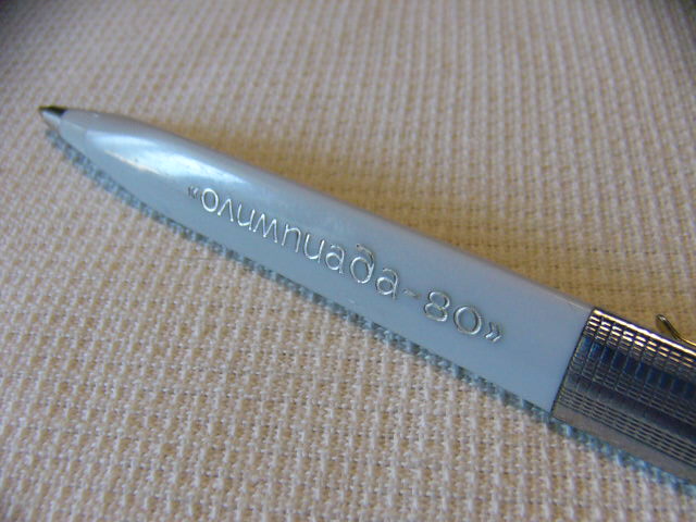 Цвет авторучки серый с надписью на носовой части "Олимпиада - 80".