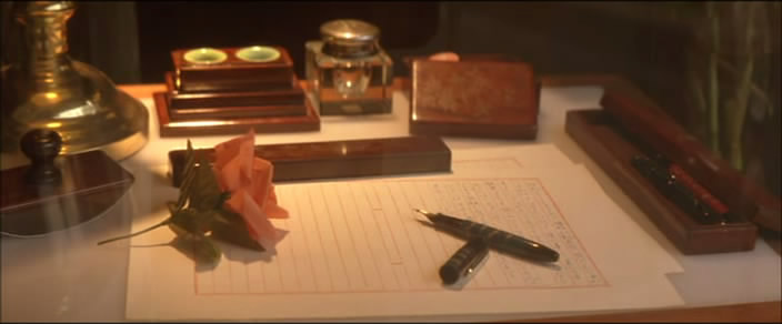 | В этой сцене есть панорамные кадры, так вот, ни на одном столе не видно чернильниц. У многих бойцов авторучки, или карандаши.
