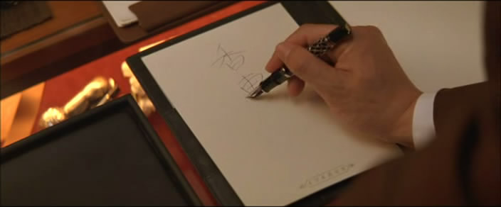 Жан Рено с ручкой "Montblanc" в фильме "Васаби"...
