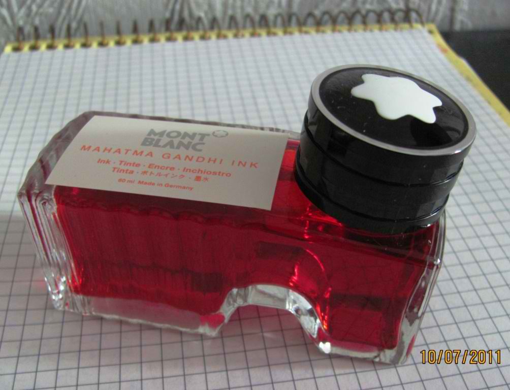 Решил опробовать чернила Mahatma Gandhi от Montblanc и был несколько поражён цветом.На плотной белой бумаге выдаёт изумительный цвет календулы(апельсина),причём ярче становится после высыхания.А вот на тонкой бумаге совсем не то.Конечно,в документообороте такие чернила использовать нельзя,но для своих записей в ежедневнике - свободно.Смотрится запись живо и весело,контрастируя с другими цветами.Так что смело рекомендую к использованию.После теста я решил заправить резервную ручку для повседневных записей.