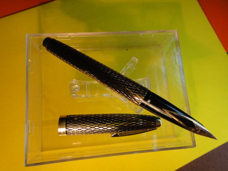 Sheaffer Imperial Sovereign, позолоченная, удлиненное инкрустированное перо F - выглядит как у Тарги, но характер письма несколько иной - пишет более четко, с меньшей мягкостью и обильной подачей при тонкой линии. Ручка была получена, заправлена, проверена, промыта и отложена. Впечатления - отличные). Покупаласть у Гарри Эллисона, www.sheaffertarga.com , 125 фунтов — очень серьезного продавца и отличного собеседника), специализирующегося на ручках Sheaffer. Мои, кстати, наилучшие рекомендации о нем.