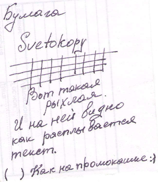 На работе еще бумага "Svetokopy" после письма на которой подача уменьшается (помогает промакивание салфеткой), на Снегурочке - нормально (Ниже сканы письма на разной бумаге)