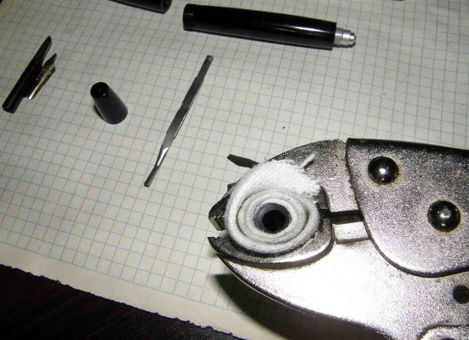 Четыре слоя плотной ткани + плоскогубцы = вытащил. Сидело плотненько. Вытаскивал перо и фидер не зря, т.к. там все забито. После ультразвуковой ванны чистенько. Теперь проблема открутить грип и посмотреть, что там с системой заправки.