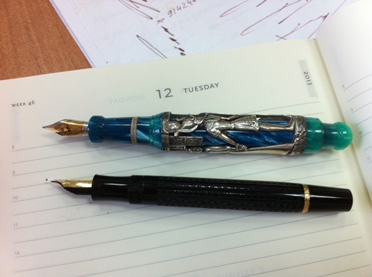 Удивительно комфортный для письма инструмент, чуть тяжелее, чем монтеграпповская Zodiac Oriental Rat, по размеру сравнима с Достоевским без колпачка.