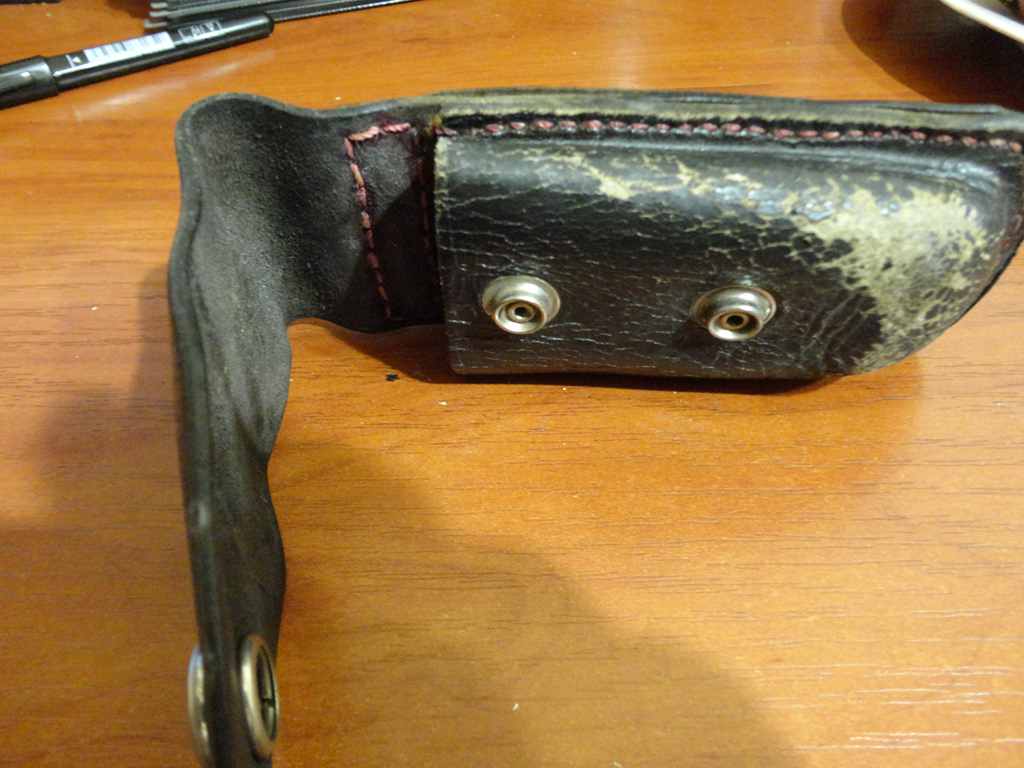 Не конкретно по поводу "ручечных чехлов", а, скорее, по поводу толстой кожи вообще. Помницца, за вечер из фирменного чехла от газового балончика сшил неплохой поясной чехольчик для ножа (фотки прилагаются). Пришлось его распотрошить и укоротить сантиметров на 8-10, хотя кожа 2,5-3 мм толщиной... Вполне мило получилось, года 3 на поясном ремне оттаскал... Единственное уточнение - шил не иголкой а КРЮЧКОМ. Сначала шилом протыкается дырка, потом швейным крючком затягивается дратва...