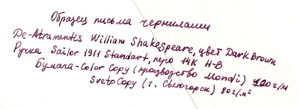 Проба пера с чернилами Sherlock Holmes. Бумаги те же, что и в предыдущем эксперименте.