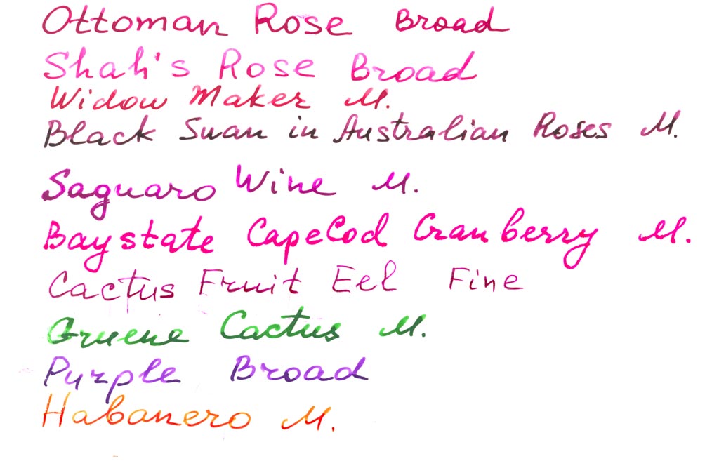 Кроме того цвет очень зависит от толщины пера. Например, при одинаковой толщине пера Saguaro Wine и Cactus Fruit Eel вообще почти не отличаются.