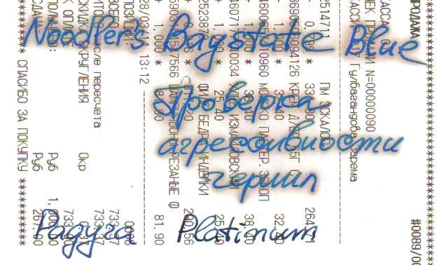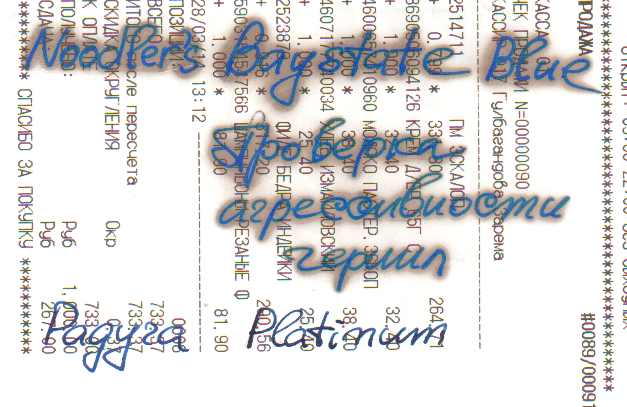 Случайно черканул на чеке из магазина ручкой, заправленной Baystate Blue, и спустя короткое время обнаружил интересный эффект. После этого провел эксперимент с хронометрированием, картинка baystate получается спустя 15 мин. после написания, а baystate2 - спустя час. Хроматография на марше (не хроматография, конечно, с чем-то на бумаге реагирует компонент чернил, но похоже).