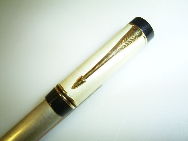 Колпачок похож на какой-то самодел с использованием оригинальных деталей от Паркера, грип-секция от Дуофолдов первого выпуска (у Дуофолдов второго выпуска была еще на пере надпись "Дуофолд"), касаемо барреля, то не могу опрелелить, к какому периоду он относится. У первого выпуска должно быть на нем два золотых колечка. Может, выпуск второй, а длинная черная заглушка - от ручки первого выпуска? Этакая "солянка многосборная". Задорого купили-то?