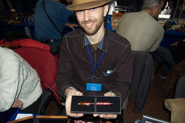 Вот собственно та ручка, которую Олег сфотографировал на выставке. Новый дизайн Черный эбонит и акрил copper gold, очень здорово напоминающий целлулоид.