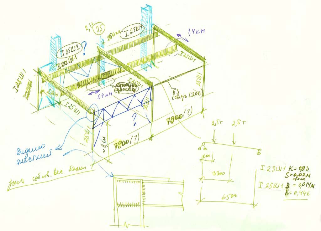 Рабочая схема неких металлоконструкций с вопросами и комментариями