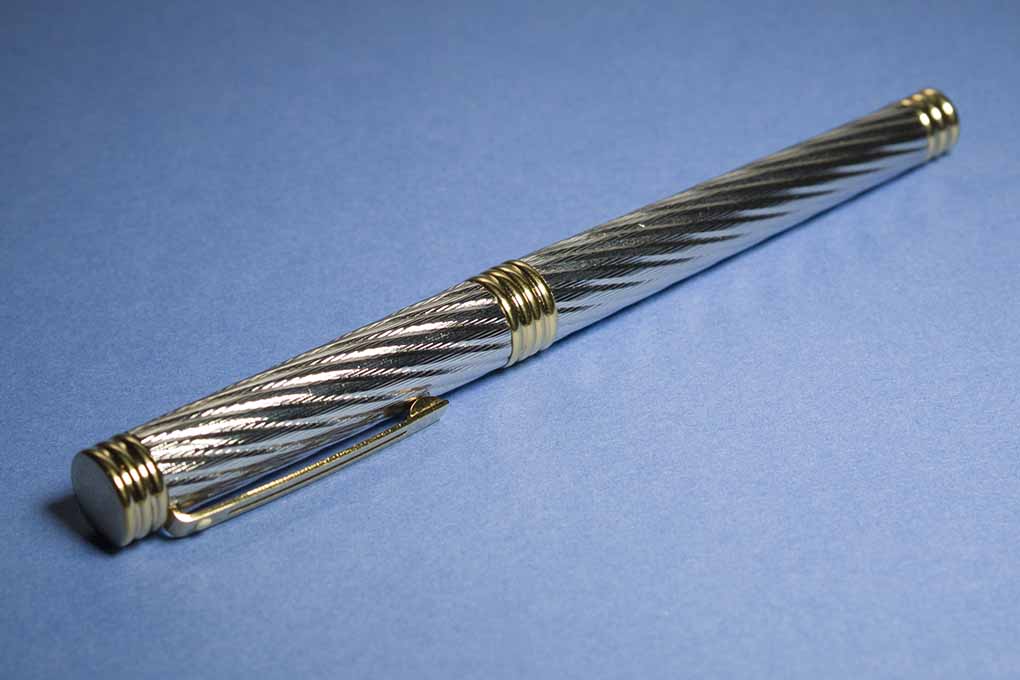 Parker, перо вроде бы F, но пишет как M у MB. Пока заправил его новыми перманентными синими чернилами MB. Использую, только когда надо подписать документы.