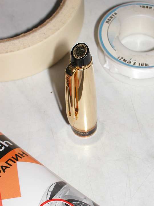 Вот теперь думаю чё бы замутить с колпаком? Может его просто полирнуть и оставить в естественном латунном цвете? Вот только верхушка колпачка будет чёрной (которая над клипсой). Или просто начать поиски донорского колпачка?