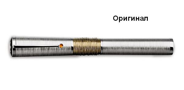 Надо признать, фальшиворучечники старались выпустить максимально приближенную версию к несуществующему продукту, хотя и применяли не самые дорогие материалы. По всей видимости так бы и выглядел настоящий шарик. Но зная другие лимитированные издания МВ и их разновидности, могу лишь заметить одну грубую ошибку дизайна в фальшивой версии - имитация обмотанной нити ближе к нижней части ручки, к кончику, тому месту, которым пишет ручка. В оригинале бы там "нижняя" нить отсутствовала, т.к. она нарушает эстетико-визуальный баланс изделия. В роллере и пере это было допустимо ввиду конструктивных особенностей. Да, нить в фейке заменена глубоким прорезом вокруг корпуса, похоже на "пашню"