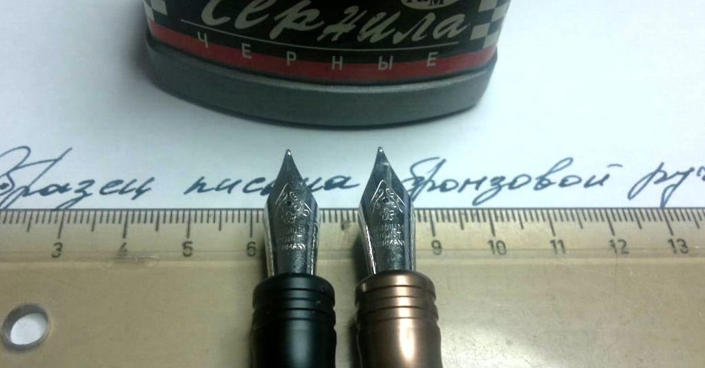 Конец пера (утолщение на кончике) визуально на какой ручке больше-на чёрной или на бронзовой?