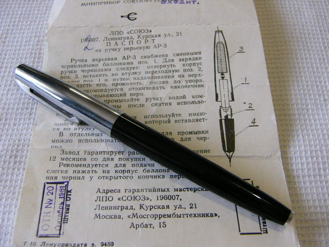 Перьевая авторучка "Союз" АР 65, АР-2-2, ГОСТ 19443-74.