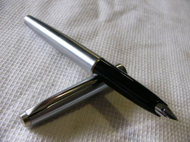 Перьевая авторучка, выполненная в металлическом корпусе и металлическим колпачком.