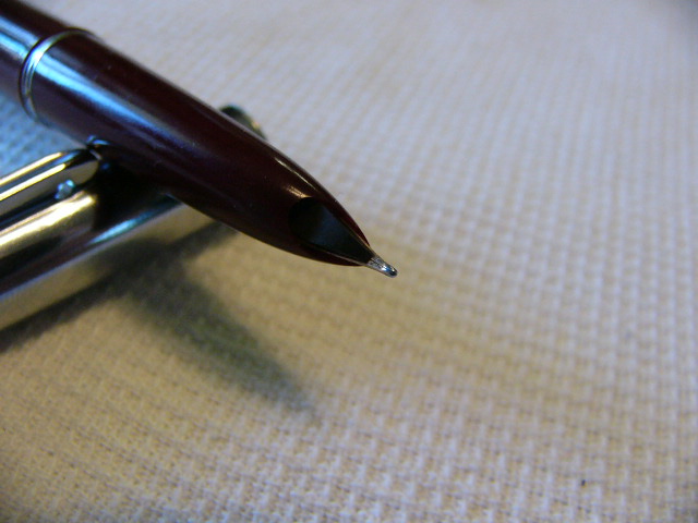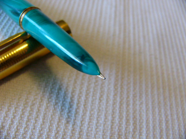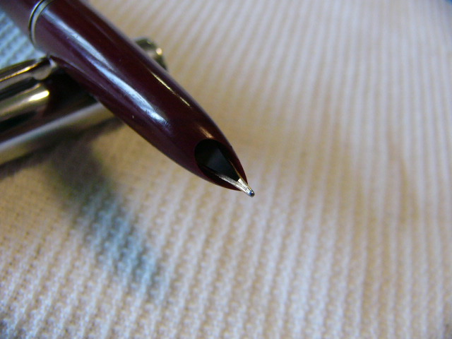 Авторучка была в использовании. Имеется небольшой изгиб пера, не влияющий на письмо