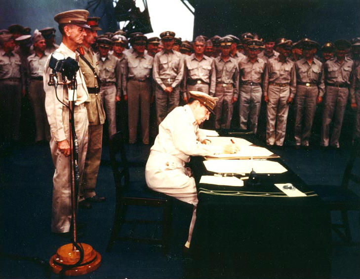 так на предыдущей фотографии подписывает Честер Нимиц насколько я понимаю. капитуляцию от имени США подписывали Нимиц и Макартур. похоже сухопутные писали 51 паркером а морские дуофолдом .