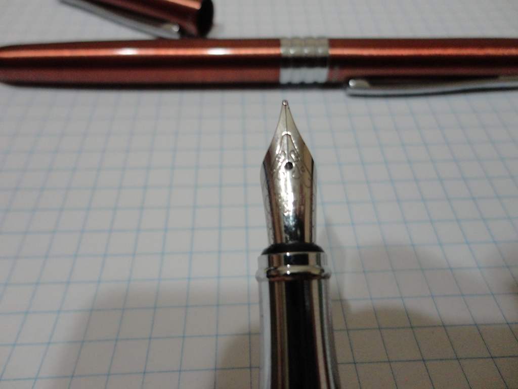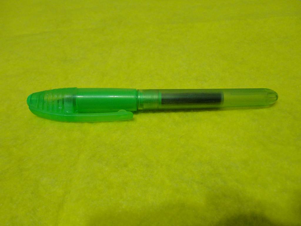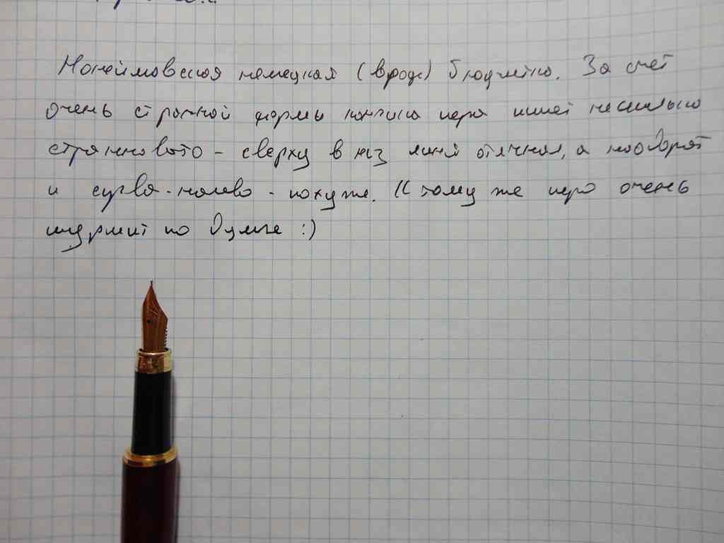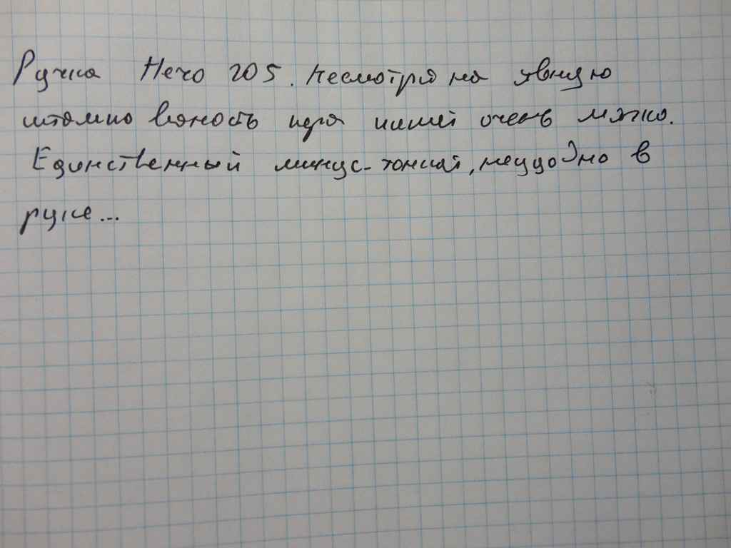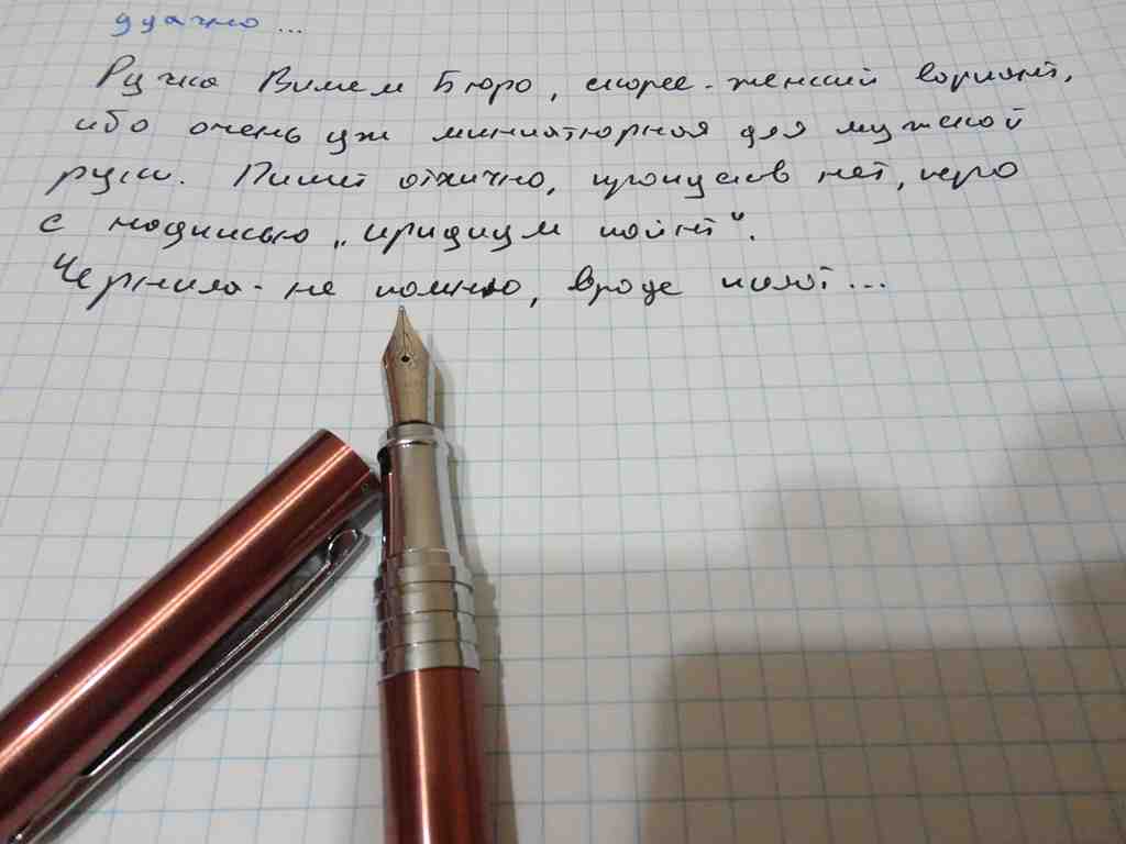 Положительное - хорошее перо, пишет мягко, жирность вроде емка. В целом перьевая ручка скорее женская, ибо очень уж небольшого размера в целом...