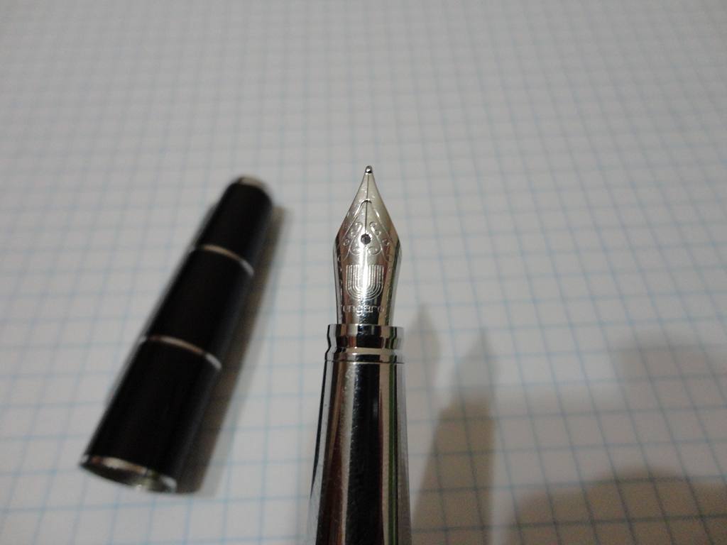 ЗЫ: забыл добавить - перо очень специфическое - две параллельных пластинки, сваренные точечной сваркой. пишет отлично, но чернило жрет... В комплекте идут два картриджа (черный и красный), пипетка (кон-20, вроде) и пленочка для прочистки щели пера.